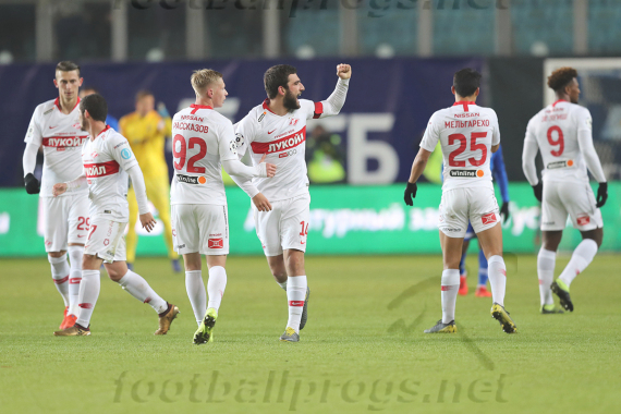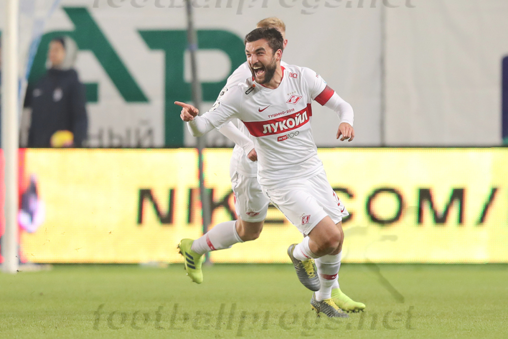 На 16-й минуте спартаковцы открыли счет. Зобнин заработал опасный штрафной. Многие поклонники «Спартака» в этот момент, наверное, вспоминали о травмированном Фернандо, ведь это была его «точка». Как оказалось чуть позже, не только его, но и Джикии. Спартаковцы с помощью Гулиева и Зе Луиша хитро разыграли штрафной, а Георгий, вышедший на поле с капитанской повязкой, нанес отличный обводящий удар в нижний угол.