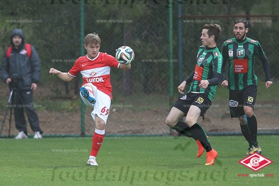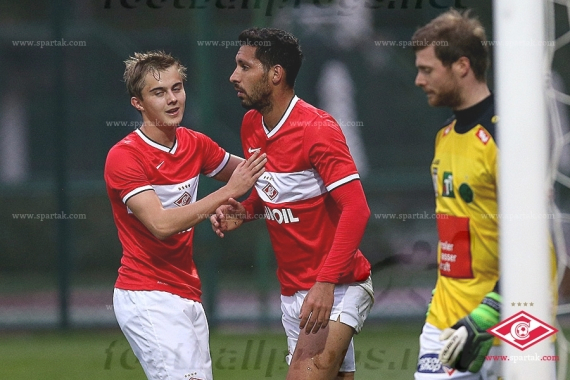 Сравняв счет, красно-белые тут же начали подбадривать друг друга, призывая партнеров не сбавлять оборотов. Кротов в одном из эпизодов хорошо поборолся за верховой мяч в штрафной, скидывал Давыдову, но форварду чуть не хватило удачи. Впрочем, вскоре юный нападающий свое слово все же сказал, и оно оказалось победным. Все началось с передачи Зуева в центр на Джано. Грузинский полузащитник, здорово проявивший себя сегодня, в касание выполнил блестящую передачу на ход Давыдову. А Денис ворвался в штрафную и хладнокровно положил мяч в дальний угол. Даже поведя в счете, «Спартак» продолжал атаковать, и финальный свисток белорусского арбитра зафиксировал волевую победу красно-белых.