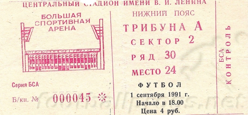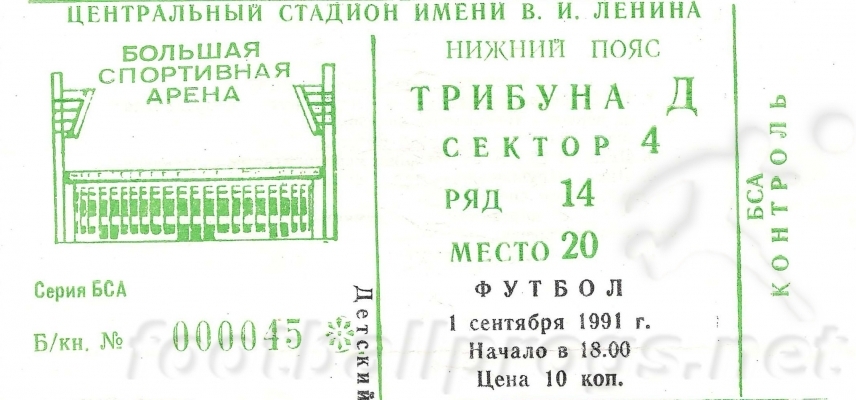 Центральный стадион имени В. И. Ленина. 1 сентября 1991 г. Ясно. 16 градусов. 18 000 зрителей.