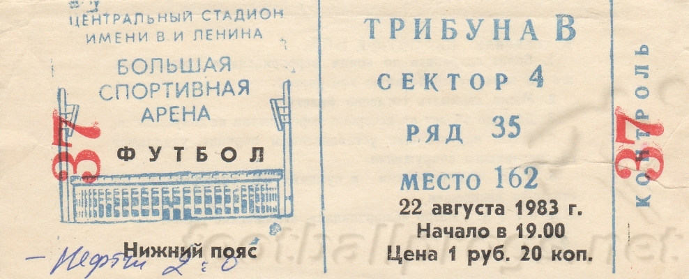 Москва. Центральный стадион имени В. И. Ленина. 23 августа 1983 г. Солнечно. 20 градусов. 35 100 зрителей.