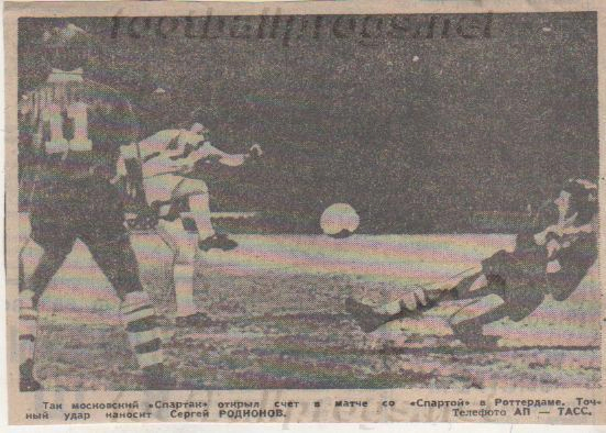«Спарта» (Роттердам, Голландия) — «Спартак» (Москва, СССР) - 1:1 (0:1).