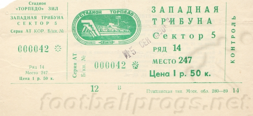 Москва. Стадион «Торпедо». 15 сентября 1990 г. Пасмурно. 8 градусов. 9600 зрителей.