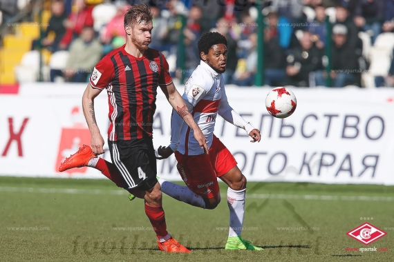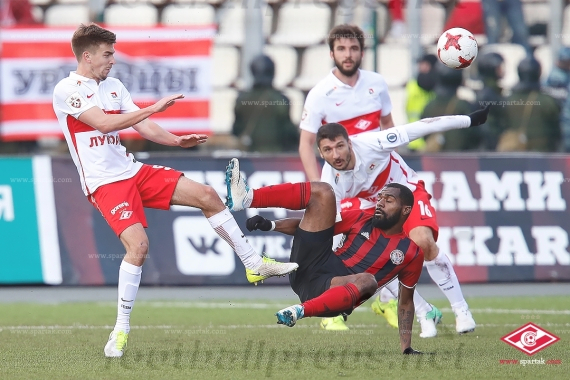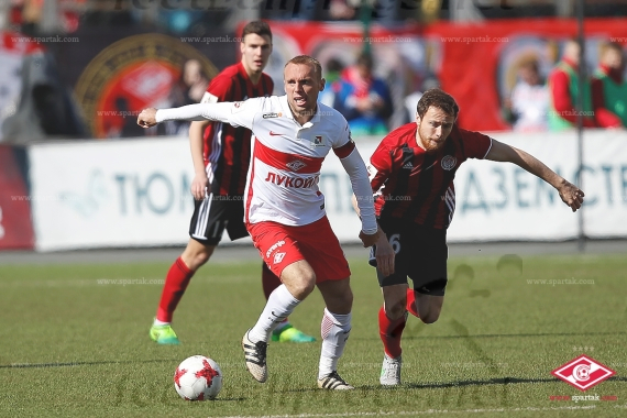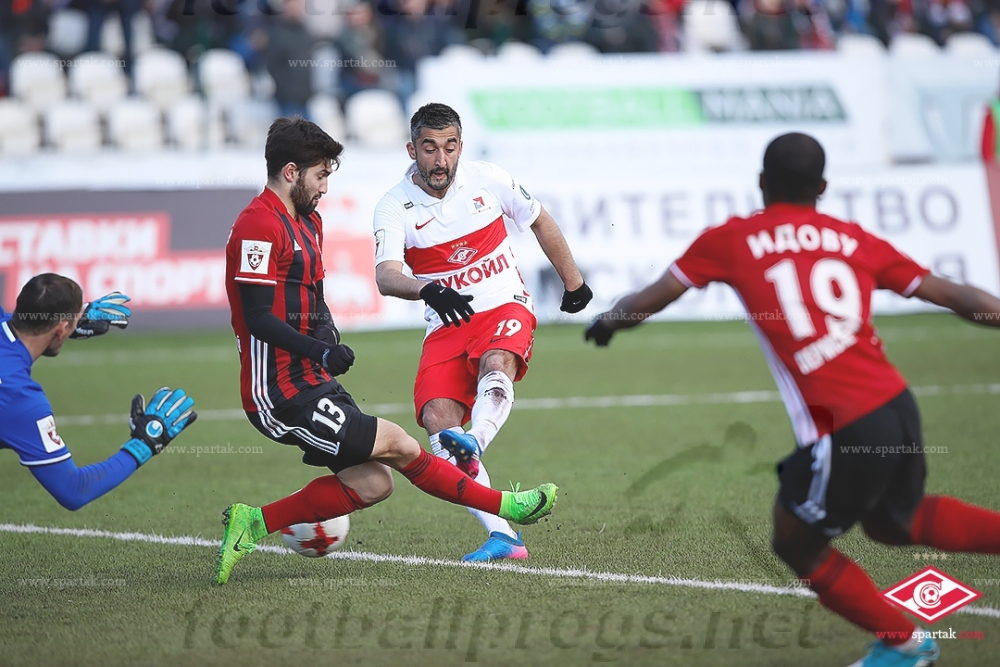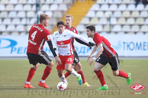 Бразильский нападающий оказался в эпицентре событий в самом дебюте встречи, когда едва не обокрал голкипера уральцев Хомича. Затем хозяева насели на наши ворота, но спартаковцы оборонялись организованно и четко. А на плотный дальний удар одного из амкаровцев Селихов своевременно среагировал. В середине первого тайма Глушаков ответил дальним «выстрелом» со штрафного — чуть мимо. Затем из-за штрафной неплохо пробил и Тигиев.