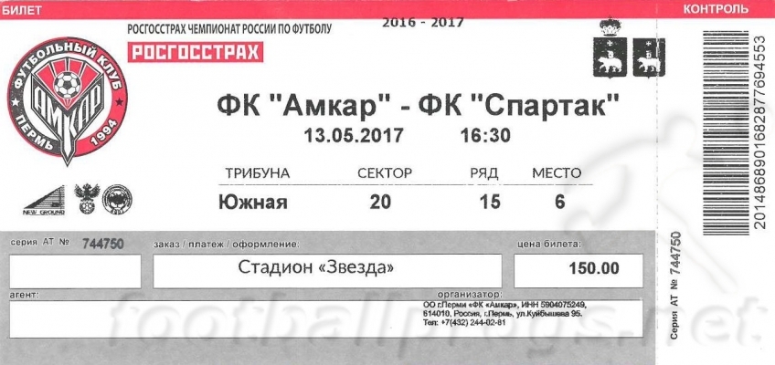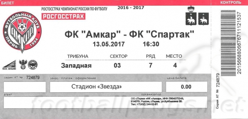Матч № 28. «АМКАР» Пермь - «СПАРТАК» - 0:1 (0:0)