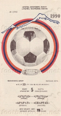 Ереван. Стадион «Раздан». 5 марта 1990 г. Солнечно. 8 градусов. 23700 зрителей.