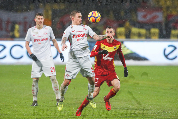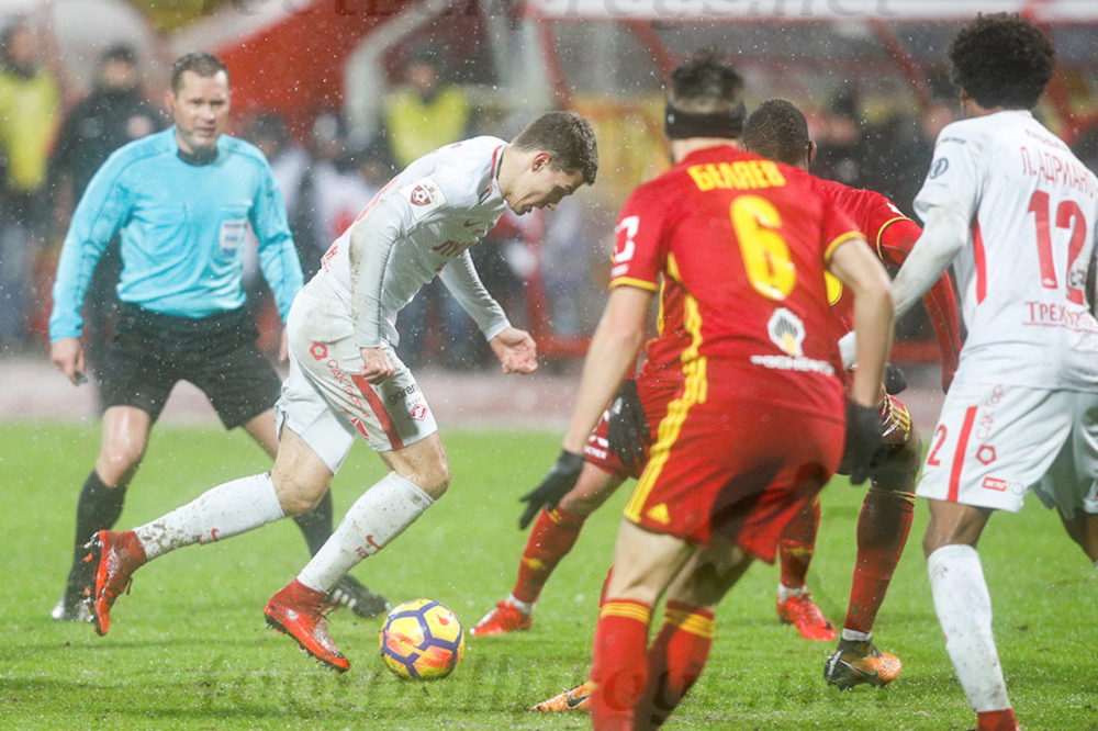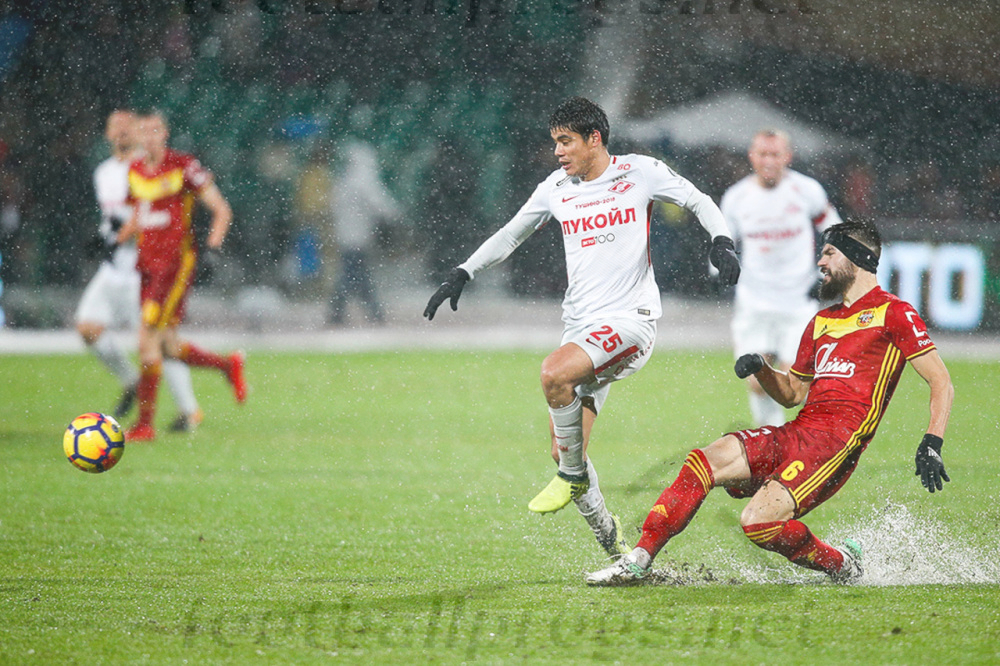 В крайне непростых погодных условиях провели матч "Арсенал" и "Спартак". Игра шла на фоне снега с дождём, мяч то и дело застревал в лужах, а часть поля периодически застилал дым от петард. И несмотря на все эти сложности, которые к зрелищному футболу никак не располагали, команды показали яркую атакующую игру, которая держала в напряжении до финального свистка. Хотя футболистам и потребовалось некоторое время, чтобы обосноваться на подвергшемся суровым испытаниям тульском газоне. В первом тайме на поле шла, в целом, равная игра, однако к забитому мячу куда ближе были "канониры". Но они свои шансы не реализовали, а в начале второго тайма "красно-белые" заметно прибавили. И даже провели гол усилиями срезавшего мяч в свои ворота Стофиры Сунзу, но арбитр Владислав Безбородов этот гол не засчитал, зафиксировав офсайд у Сальваторе Боккетти. Затем игра снова пошла в обе стороны, но с приближением финального свистка преимущество москвичей выглядело всё более заметным. Время для них стремительно истекало, пока своё слово не сказал капитан "Спартака" Денис Глушаков, поразивший ворота Владимира Габулова после передачи Луиса Адриано на заключительной минуте основного времени. И викторию гости уже не упустили, впервые набрав очки в Туле. Дружина Массимо Карреры одержала четвёртую победу подряд в премьер-лиге и на данный момент поднялась на третье место, обогнав "Зенит", но петербургской команде сыграть в 19-м туре ещё только предстоит. В Ливерпуль спартаковцы отправятся в отличном настроении. "Арсенал" же в третий раз кряду потерял очки в чемпионате и рискует опуститься в таблице ещё ниже девятого места.