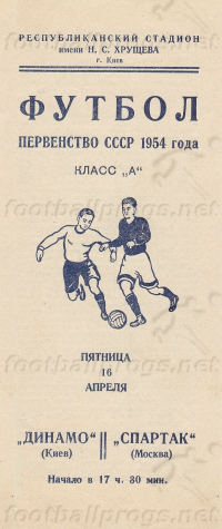 Киев. Стадион имени Н.С.Хрущева. 16 апреля 1954 г. 50000 зрителей. Судья: Э.Клавс (Рига).