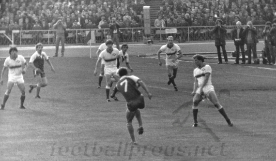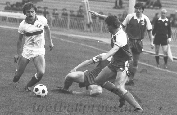 «Отодвинув» спартаковцев к их штрафной площади, динамовцы не замедлили использовать свое преимущество. В один из моментов Яковенко двинулся с мячом по центру. Гости, видимо, ожидали от него передачи партнерам. И никто не помешал ему нанести метров с 25 прицельный удар — мяч угодил в правый от Дасаева нижний угол ворот.