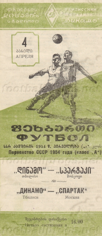 Тбилиси. Стадион «Динамо». 4 апреля 1954 г. 40000 зрителей. Судья: Э.Саар (Таллин).