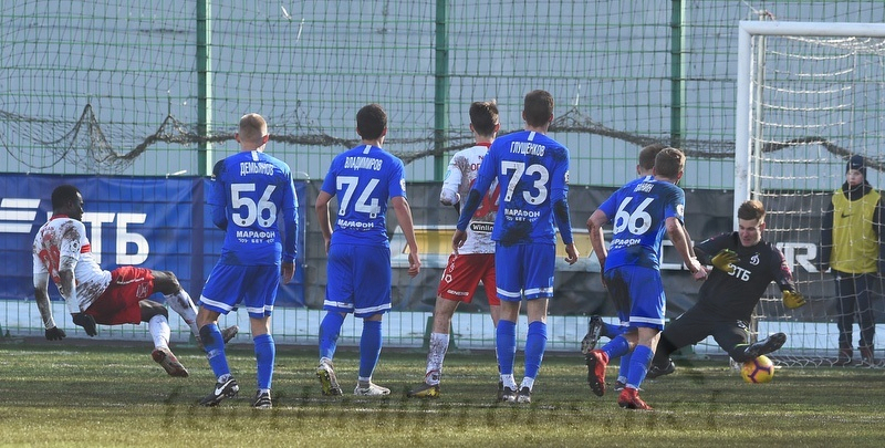 Напомним: лучший бомбардир первой части молодежного первенства Прошляков выступает теперь за «Спартак-2». А у призванного заменить его Тиуба проявить себя пока не получается. Вот и сегодня за 50 минут игрового времени сенегалец имел несколько хороших шансов, но всякий раз голкипер «Динамо» дуэли у него выигрывал.