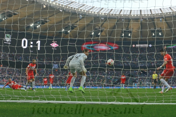 Луис Адриано мог удвоить результат, но после паса Зе Луиша бразилец, к сожалению, пробил слабовато. А на 73-й минуте арбитр из Санкт-Петербурга Владислав Безбородов усмотрел пенальти в спорном эпизоде с участием Комбарова и Гранквиста. Смолов не реализовал в прошлой кубковой игре сразу два одиннадцатиметровых, но в третий раз не промахнулся, огорчив Реброва, проводившего свой 100-й матч за «Спартак».