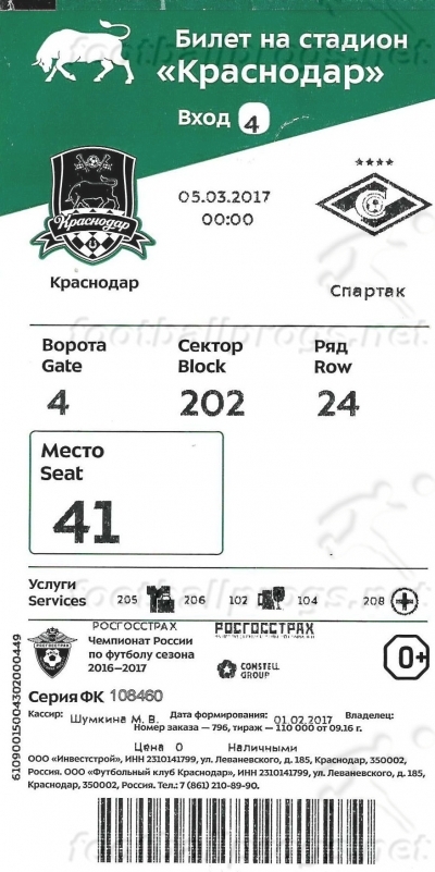 Краснодар. Стадион ФК «Краснодар». 5.03.17. 31 250 зрителей. Судья: В. Безбородов (Санкт-Петербург).