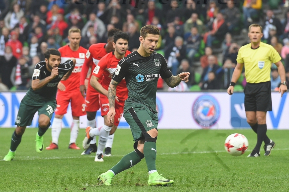 А на экваторе тайма главный тренер «Краснодара» вовсе исчерпал лимит разрешённых регламентом замен, поменяв Клаэссона на Окриашвили. Пока свежий футболист осваивался на поле, в ворота Реброва всё-таки был назначен одиннадцатиметровый! Безбородов усмотрел нарушение правил на Гранквисте со стороны Комбарова. Повтор эпизода показал, что Дмитрий всё-таки ударил по пятке шведа. К «точке» подошёл Смолов и хладнокровным ударом направил мяч в цель – 2:2. Реабилитировался Фёдор за два нереализованных пенальти в кубковой встрече против «Урала»! Невероятной обещала быть концовка. Очевидно, что ничья не устраивала оба коллектива. Хозяева, находясь на эмоциональном подъёме, заработали многообещающий штрафной. К мячу подошёл Смолов и пробил в «стенку», задев которую снаряд улетел за пределы поля. Очередной «корнер» в исполнении южан ничем толковым не завершился. Пошла игра в атаке у южан, однако доминирование команды Игоря Шалимова на поле продлилось недолго. Вскоре Смолов дёрнул мышцу задней поверхности бедра и не смог продолжить матч. К тому моменту главный тренер «быков» уже использовал все замены. Поэтому, хозяевам пришлось доигрывать матч в меньшинстве. А вот Массимо Каррера лишь под занавес второго тайма совершил первую перестановку в составе своего коллектива. Глушакова сменил Мельгарехо. Усилить группу атаки решил итальянский специалист. Получив на ровном месте численное преимущество, футболисты «Спартака» в концовке практически безвылазно находились на половине поля соперника. Оккупировали они все подступы к штрафной площади неприятеля, надеясь обнаружить бреши в насыщенной обороне «быков». Однако использовать численное превосходство и вырвать победу столичный клуб всё-таки не сумел. Боевая ничья!