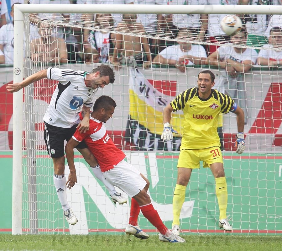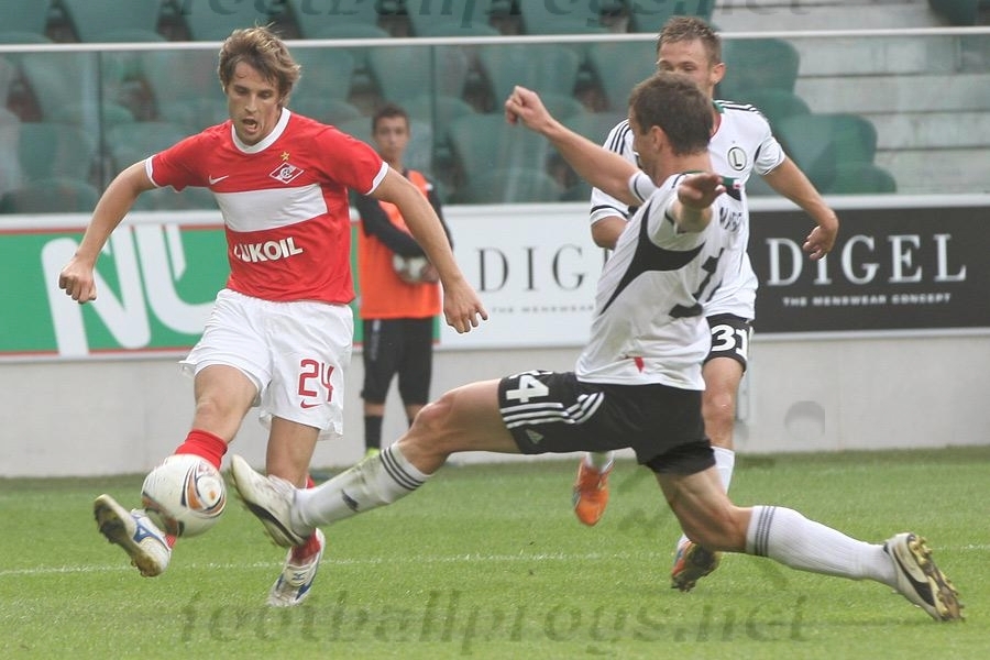Дзюба привычно занял место под выдвинутыми форвардами и так же привычно чередовал точные передачами с неудачными. Но хотя именно с грубейшей ошибки Артема началась первая голевая комбинация "Легии", вешать на него всех собак считаю неправильным. Безобразно сыграли защитники красно-белых, которые, словно завороженные, следили за тем, как поляки распоряжаются мячом в их штрафной.