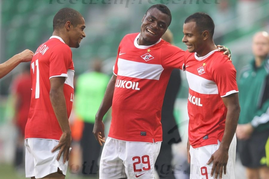 Стартовый состав "Спартака" угадывался, ведь, как известно, победное сочетание не меняют. Так что по сравнению с игрой против "Анжи" в рядах красно-белых произошла только одна замена: место травмированного Дмитрия Комбарова на левом фланге полузащиты занял Эменике, для которого эта встреча стала первой в основе "Спартака". А учитывая наличие Дзюбы, Веллитона и Ари, схему москвичей вполне можно было обозначить как 4-2-4. И в принципе так оно и было. Дзюба действовал на передней линии атаки вместе с Веллитоном, практически не отходя в глубину поля, как это нередко было в последних матчах. Как показал первый тайм, не спешили отрабатывать в обороне Ари и Эменике, периодически менявшиеся флангами.