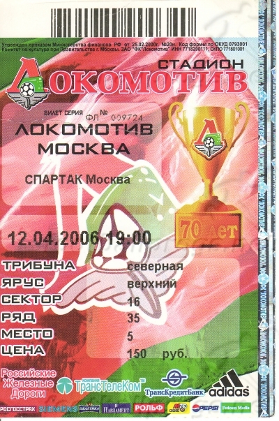 12 апреля 2006. Москва. Стадион "Локомотив". 7 градусов. 19 423 зрителя. Судьи: КАЮМОВ. Лукашин, Монахов (все - Москва).