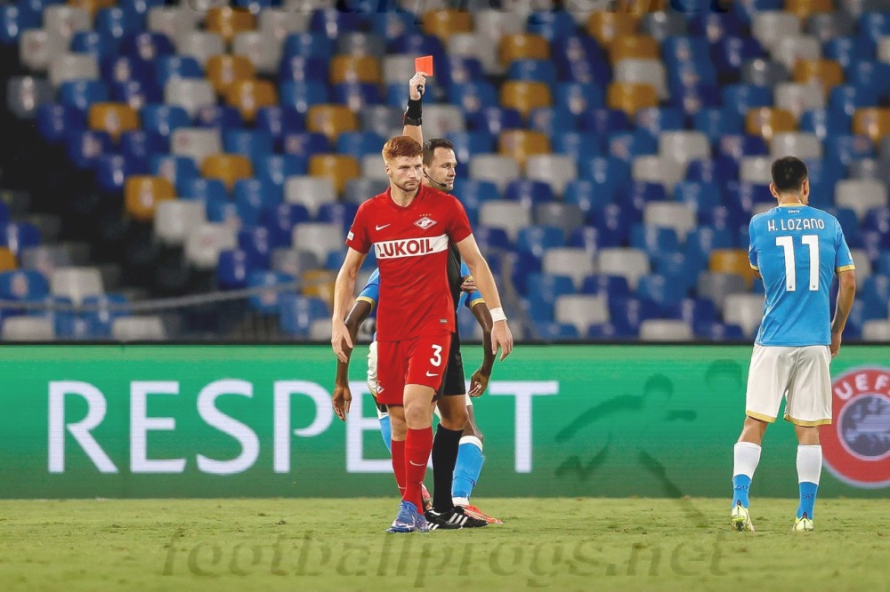 Ключевым эпизодом, который окончательно помог москвичам переломить ход игры, стало удаление крайнего защитника «Наполи» Мариу Руя. Сначала арбитр наказал его желтой карточкой за грубейший фол против Мозеса, но затем посоветовался с ВАРом, сходил к монитору и поменял цвет на красный.