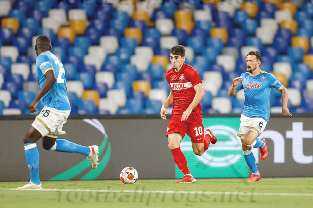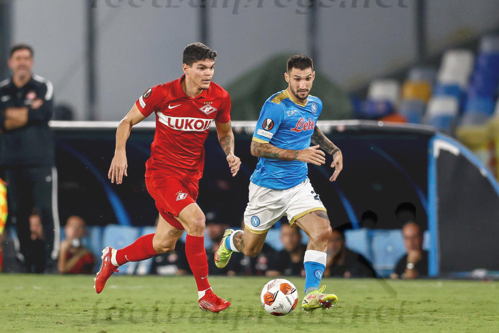 “Спартак” начал выступление на групповой стадии Лиги Европы с кошмарного домашнего поражения от “Легии” со счётом 0:1, пропустив в самой концовке второго тайма от Кастрати. Та неудача сделала призрачными шансы красно-белых даже не на выход в плей-офф второго по значимости еврокубка, а на итоговое третье место в группе, дающее право выступить в весенней части Лиги конференций. Очевидно, что именно “Легия” считается самым близким по уровню соперником с командой Витории в группе C. Если проигрывать у себя дома чемпиону Польши, на что москвичи могут рассчитывать в противостояниях с более мощными “Наполи” и “Лестером”? Именно в Неаполе “Спартак” проводил матч второго тура. Итальянский клуб стартовал на групповой стадии с ничейного результата в гостевом противостоянии с “Лестером”. Причём, коллектив Спаллетти к 64-й минуте проигрывал “лисам” со счётом 0:2, но благодаря дублю Осимхена смог избежать первого поражения в сезоне.
