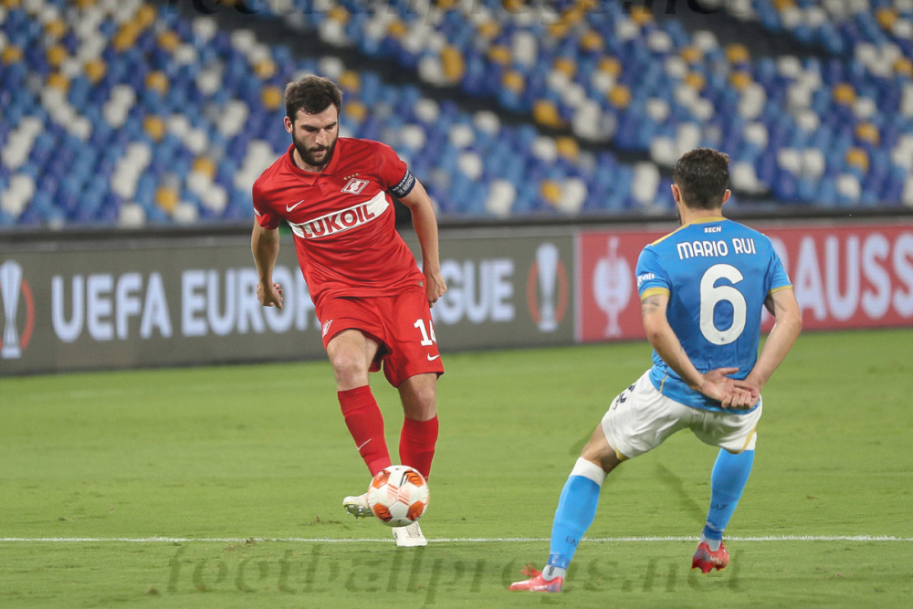 Какое-то время ушло у красно-белых на то, чтобы отойти от шока, и добираться до чужой штрафной совсем не получалось. Тогда как «Наполи» продолжал атаковать и имел еще несколько хороших шансов. Опасные удары самоотверженно накрыли Жиго и Кофрие, а затем Максименко справился с попыткой Ди Лоренцо, бившего в упор.