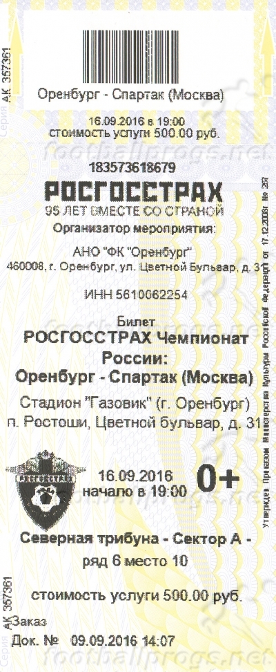 16 сентября. Оренбург. Стадион “Газовик”. 10 градусов. 7043 зрителя (вмещает 7500)