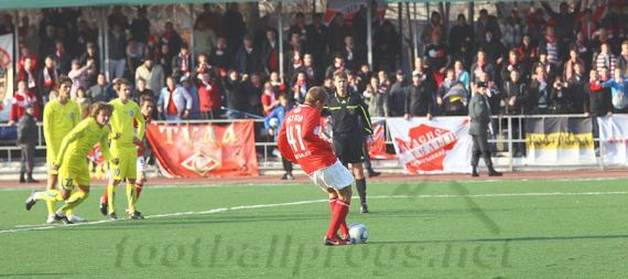 Постепенно преимущество москвичей нарастало. Они уверенно контролировали центр поля, наносили удары со средних и дальних дистанций, часто подавали угловые. В какие-то игровые отрезки атакующие крайние хавбеки Киреев и Озобич менялись флангами, запутывая оборону соперника. Словом, гол назревал, и он состоялся в компенсированное к первому тайму время.