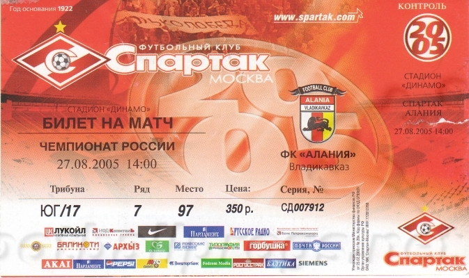 «Спартак» (Москва) - основная команда, ветераны, юноши: программы, билеты, фотографии и отчёты