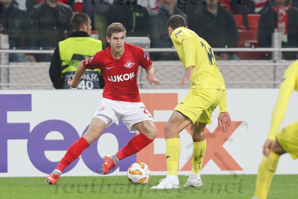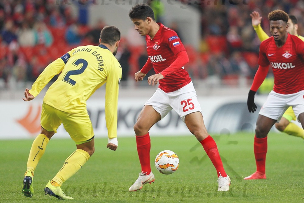 Каррера вопреки всему продолжает гнуть свою линию и ставить на молодежь. Вот и в ключевом матче группового этапа в основе появились Максименко, Рассказов, Ломовицкий и Игнатов, занявший место в треугольнике в центре поля, при живых Реброве, Попове, Самедове, Ханни и Ташаеве. «Спартак» начал бодро – москвичи стремились играть в атаку, слаженно летели в прессинг, много двигались, однако выхлоп от всей этой активности был практически нулевым – неудачно разыгранный корнер да пара офсайдов в пассиве Зе Луиша, который не поспевал за мыслью обороны гостей. Те переждали стартовый всплеск «красно-белых» и к исходу стартовой десятиминутки начали отвечать. Пристрелочный от Самуэля улетел над перекладиной, а вот Экамби пару минут спустя все сделал как надо. Тригерос в центре, казалось, передержал мяч, но в последний момент успел на тоненького покатить вразрез в штрафную, где у угла вратарской догнал его Экамби. Тот последовательно обыграл Рассказова с Боккетти, смещаясь в центр, а затем из-под Джикии пробил в дальнюю «девятку». Максименко зацепил, но не спас. Пару минут спустя Фунес Мори расчехлил пушку издали, но не попал. Пропущенный гол обескуражил «красно-белых» - на несколько минут они выключились, действуя инертно и разлажено. «Вильярреал» события не форсировал, стараясь контролировать мяч в середине, выманивая соперника, чтобы разогнать быструю атаку. Такого рода атака прошла у них по центру ближе к середине тайма, но Экамби пожадничал, пробив издали – выше створа. Пару минут спустя форвард выступил уже в роли ассистента, набросив мяч на Сансоне, но у того акцентированный удар не получился. «Спартак» ответил стремительным выпадом, в ходе которого Игнатов заработал довольно перспективный стандарт. Фернандо решил пробить, но получилось сильно мимо створа. И все же к исходу получаса игрового времени стало вновь вырисовываться преимущество «Спартака» - оправились москвичи. Первый звоночек для гостей прозвенел минут за десять до перерыва, когда поддержавший атаку Рассказов здорово раскачал оппонента на фланге и выдал закидушку на Зобнина. Один был Роман, но мяч обработал не очень удобно, и пробил в падении в угол, но слабовато. Фернандес дотянулся и выручил, смахнув мяч за лицевую. Однако в ходе розыгрыша углового Сансоне рукой прервал подачу Ломовицкого, и арбитр указал на «точку». Зе Луиш аккуратно пробил в угол, не оставив шансов голкиперу. Концовка тайма прошла с преимуществом «Спартака». Фернандо пробовал приложиться издали, но точности не хватило. Следом Ломовицкий казалось уже потерял мяч у флажка, но поскользнулся защитник гостей, и Александр все-таки вернул контроль, выложив мяч в район одиннадцатиметровой Зобнину, который влет пробил на трибуны. У гостей контригра в заключительную треть тайма практически пропала.