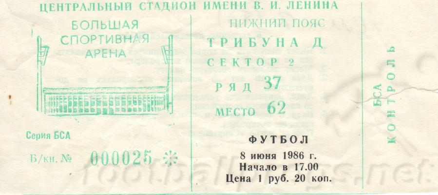 Центральный стадион имени В. И. Ленина. 8 июня 1986 г. Солнечно. 29. градусов. 20 000 зрителей.