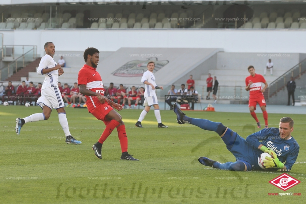 Во втором тайме шла в целом равная игра, но спартаковцы превзошли соперника по числу опасных моментов. Так, на 58-й минуте Самедов блестяще увидел рывок Комбарова в штрафную и сделал точный пас ему на ход, Дмитрий нацеленно простреливал в центр. Если бы не датский защитник, то Луис Адриано был бы готов отправить мяч в сетку.