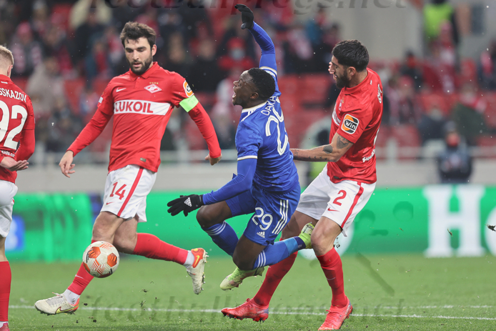 «Спартак» в сумасшедшей перестрелке проиграл на своем поле «Лестеру» (3:4), ведя за минуту до конца первого тайма 2:0. Все четыре гола забил Патсон Дака, и все они пришли из зоны заменившего дисквалифицированного Кофрие Рассказова.
