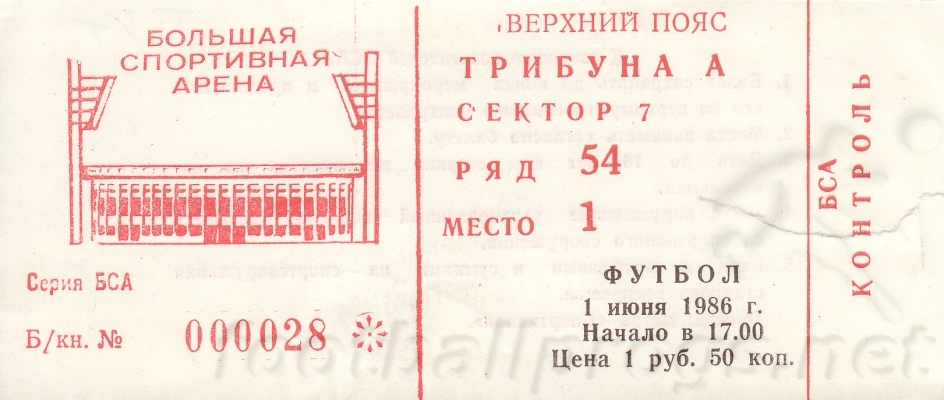 Центральный стадион имени В. И. Ленина. 1 июня 1986 г. Солнечно. 24 градуса. 8000 зрителей.