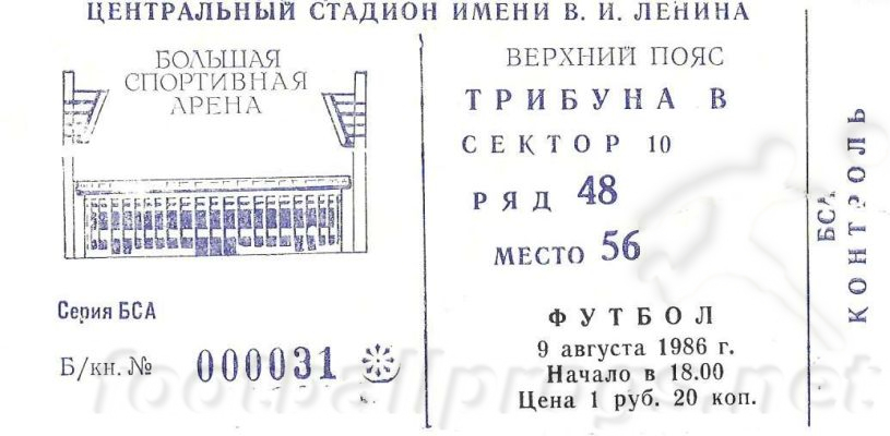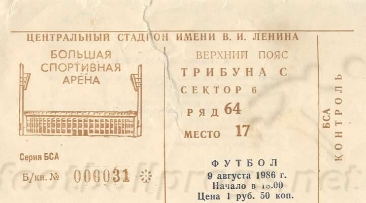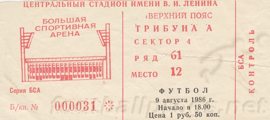 Москва, Центральный стадион имени В. И. Ленина. 9 августа 1986 г. Ясно. 28 градусов. 42 000 зрителей. Судьи А. Хорлин, О. Чиненов, В. Новиков (все - Москва).