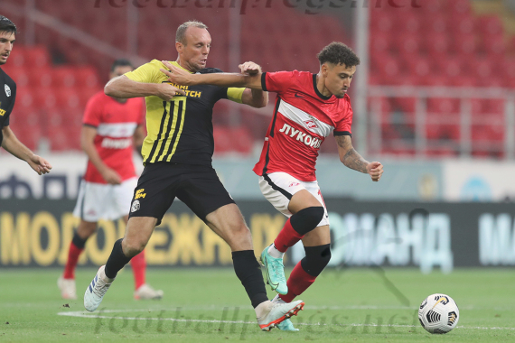 Хватало у «Спартака» и тонких розыгрышей мяча. В этих эпизодах едва ли не самым нестандартным игроком был Соболев. Центрфорвард то пяткой сыграет, то хитро пропустит мяч на третьего. И если в дебюте игры его пятка испортила момент (не получился ни удар, ни пас на пустые ворота), то на 21-й минуте Соболев забил ей. Ассистировал Александру… Денис Глушаков, который в лучшие годы отдал много голевых передач на этом стадионе. Мяч удачно для Соболева отскочил от экс-спартаковца после отличного прохода, увенчанного ложным финтом, в исполнении Рассказова.