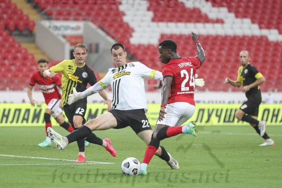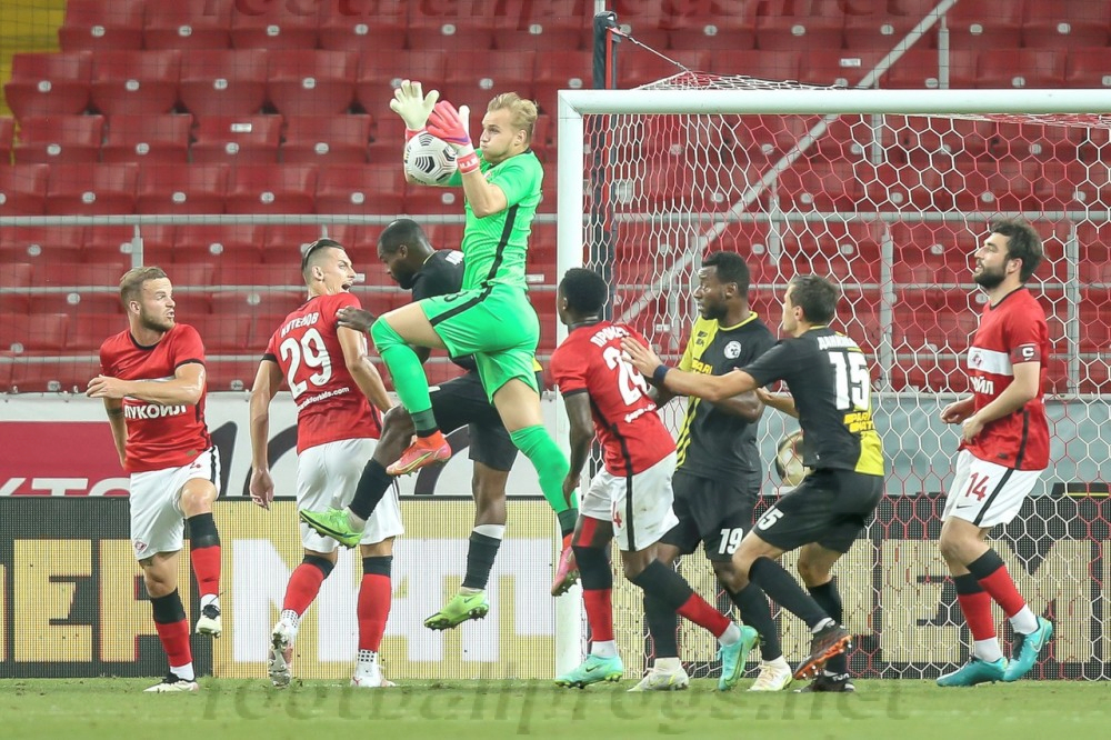 Оборону «Химок», активно перекрывавших центр (их схема напоминала что-то вроде 5-3-1-1), спартаковцы успешно вскрывали за счёт взаимодействий фланговых игроков в свободных зонах. Вдобавок команда Витории выигрывала почти все стандарты, которые зарабатывала в большом количестве. И уже на 10-й минуте забила после подачи Промеса с углового: сработала идея с врыванием Жиго на ближнюю штангу – француза упустил Камышев.