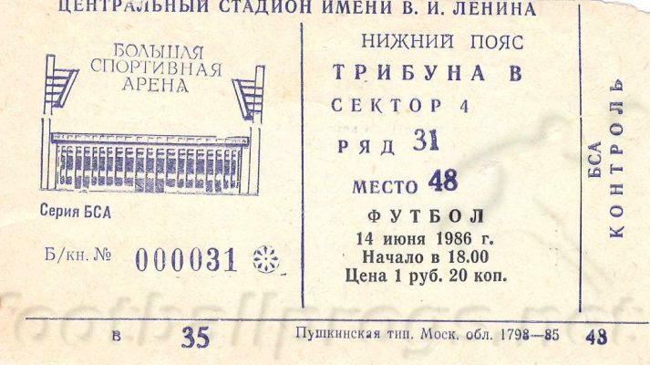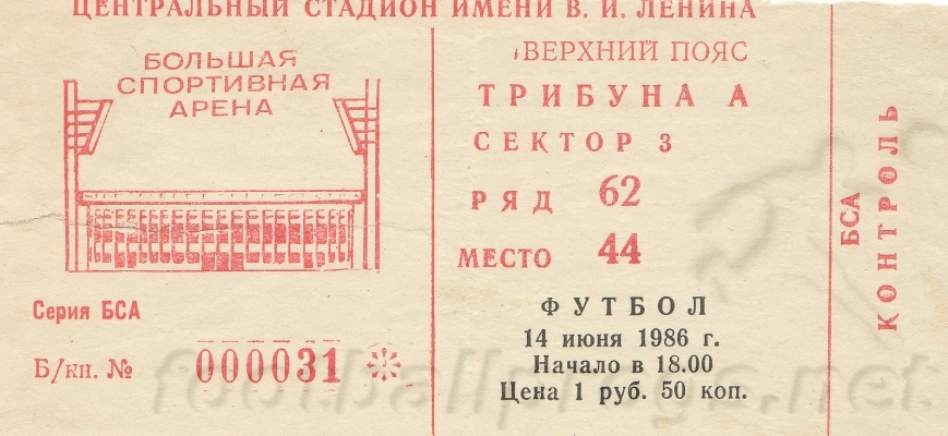 Москва. Центральный стадион имени В. И. Ленина. 14 июня 1986 г. Ясно. 25 градусов. 15 000 зрителей.