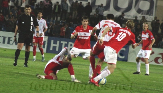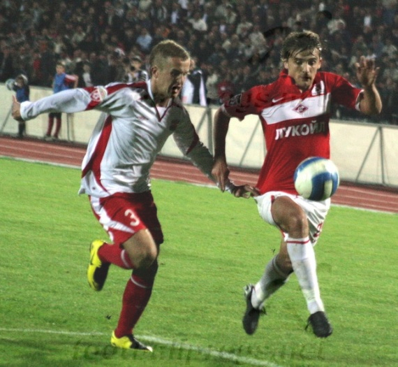 Что же касается самого матча, то обе команды начали его практически в тех же составах, что выходили на поле туром ранее. «Спартак» приехал без четверки травмированных – Штранцль, Иранек, Быстров и Торбинский по-прежнему являются пациентами врачей. Отсутствие двух последних явно обеднило игру красно-белых из Москвы – фланги у гостей, по сути, не работали, да и драйв, который вносили в игру скоростные полузащитники, практически отсутствовал.