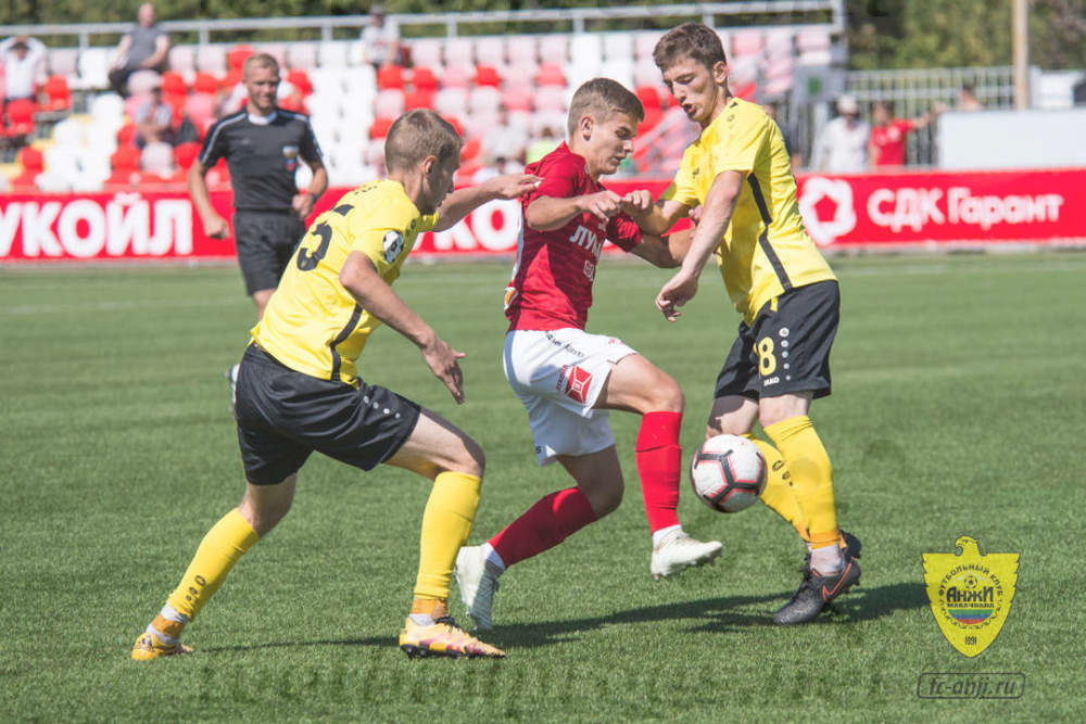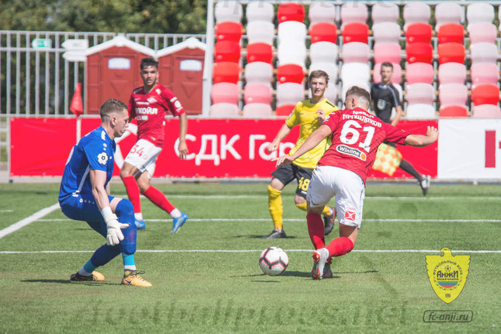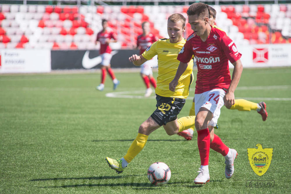 Дубль «Анжи» — более возрастной коллектив и, следовательно, серьезный соперник. Свою силу он доказал это уже в предыдущем туре, когда обыграл в гостях молодежку «Уфы». Сегодняшнюю встречу махачкалинцы тоже начали уверенно, практически ни в чем не уступая техничным спартаковцам, и даже открыли счет. Сазонов нарушил правила против Андямова в борьбе на боковой линии штрафной, и Агаларов реализовал пенальти.