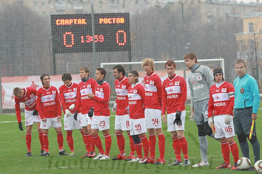 По сравнению с прошлым матчем против «Зенита» спартаковские дублеры, лидирующие в чемпионате, вышли на поле без травмированного Иванникова, дисквалифицированного Ходырева, а также без Козлова и Сабитова, оставшихся в Тарасовке тренироваться с основой. Добавьте к этим потерям ранее травмированных Маляку, Каюмова, Чежию, дисквалифицированного Малеева и уехавших в юношескую сборную России Кутина с Пуцко — и станет ясно, с какими кадровыми трудностями столкнулся старший тренер нашей «молодежки» Дмитрий Гунько перед поединком с ростовчанами.