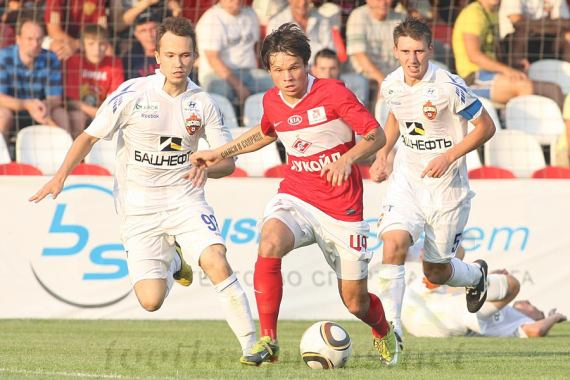 Первый тайм матча, за которым наблюдали спортивный директор РФС Николай Писарев и главный тренер юношеской сборной России 1993 года рождения Дмитрий Аленичев, прошел в позиционной борьбе с минимумом опасных моментов. Спартаковцы злоупотребляли индивидуальными действиями, вследствие чего коллективная игра у нашей команды не клеилась. Выдвинутый на острие атаки Козлов был отрезан от полузащиты. ЦСКА же реализовал единственный свой шанс: Дзагоев, получив диагональный пас с правого фланга, мастерски отправил мяч в ворота.