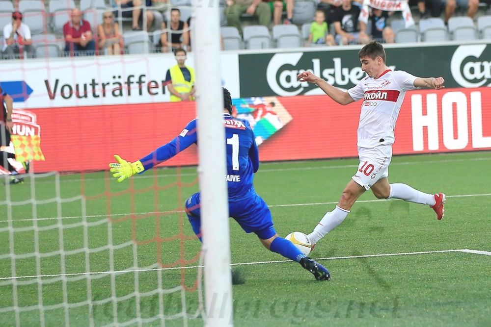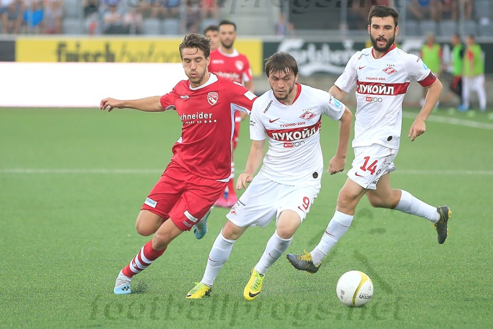 Московский «Спартак» обыграл в Швейцарии местный «Тун» в первом матче 3-го квалификационного раунда Лиги Европы со счетом 3:2. Несмотря на успешную игру Андре Шюррле и Зелимхана Бакаева, оформившего дубль, красно-белые едва не лишились победы — ведя по ходу матча в два мяча, команда Олега Кононова пропустила дважды за 14 минут.