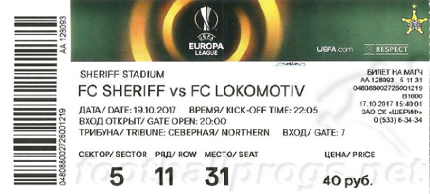 Шериф Тирасполь, Молдавия - Локомотив Москва